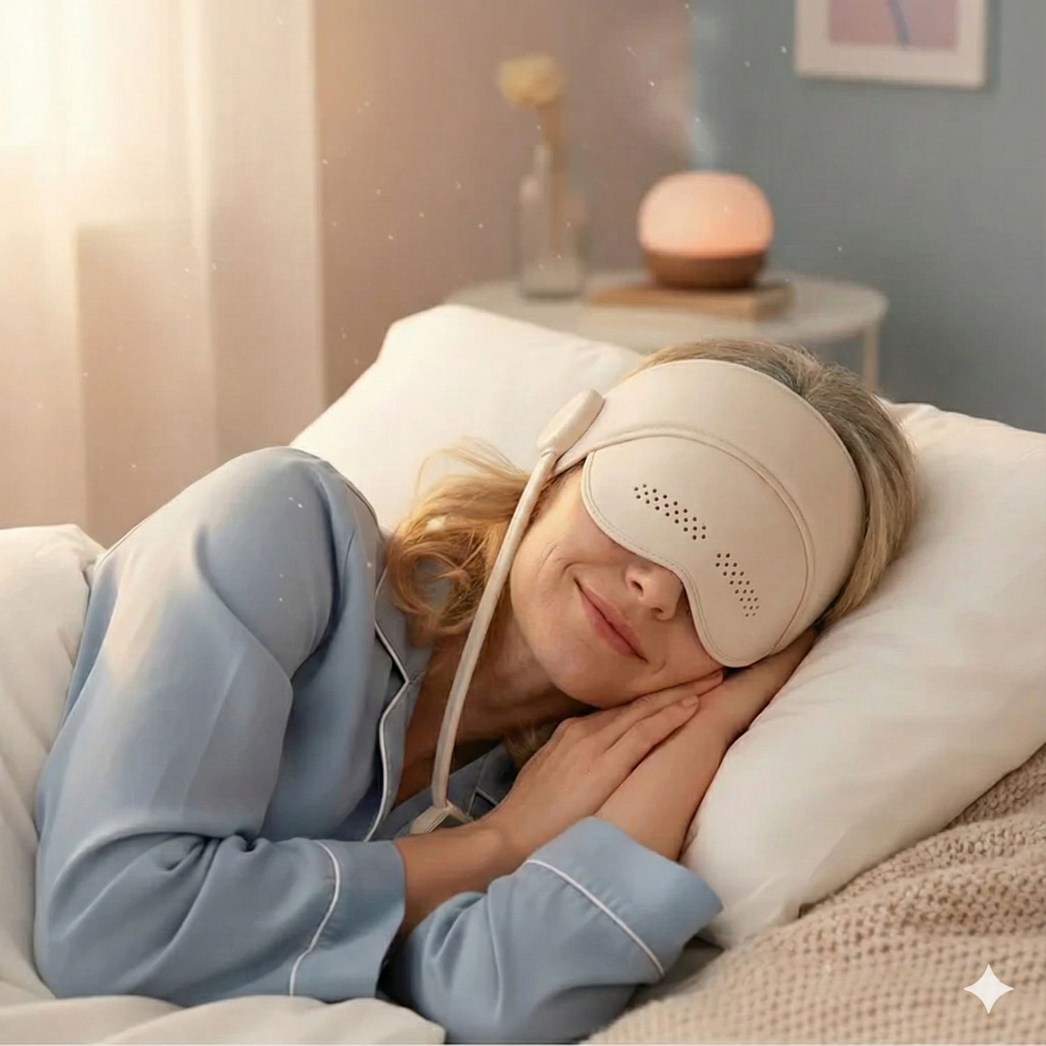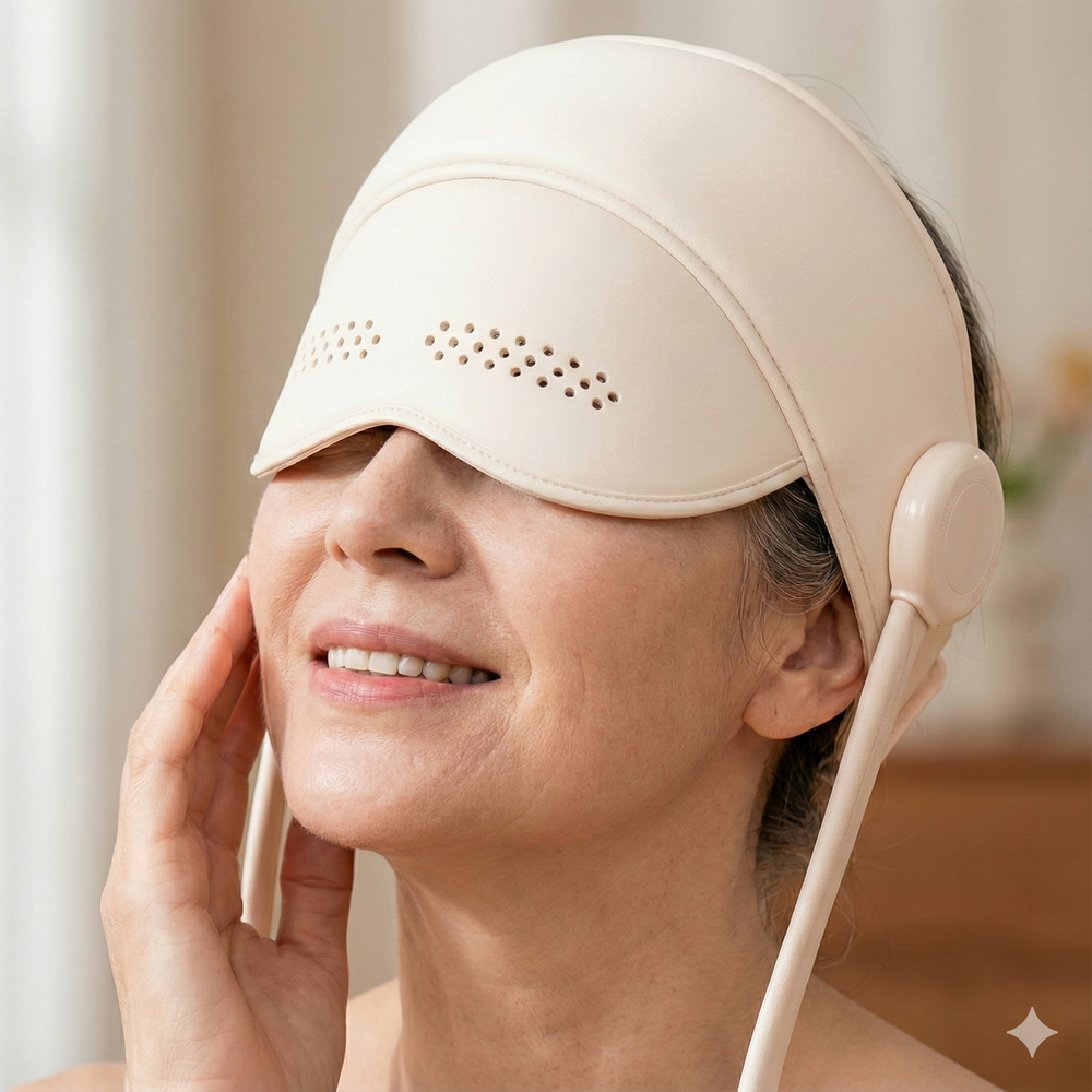 The silent, comfortable head massaging sleep mask that quiets your racing mind and stops 3 AM wake-ups – whether it's stress, hormones, or life keeping you awake